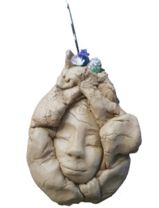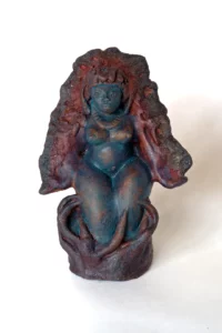 Femmes Amoureuses, Déesses, Femmes enceintes, Prêtresses, Mères, Soeurcières, Madones, Reines Yoghini -15 cm, 2023 Soeurcière des bois – 30 cm, 2022 Madre -60 cm, 2020 Prêtresse du feu – 18 cm, 2018 Forever, 18 cm, 2018 TierrAzul – 30 cm, 2018 Shakti – 52 cm, 2017 Prêtresse – 43 cm, 2017 Materre – 48 cm, 2017 Douceur – 46 cm, 2017 Aguas – ,55 cm, 2017 Azur – 60 cm, 2017 Soléane – 60 cm, 2017 Shower 22cm, 2016 La doyenne – 22 cm, 2012 Femmes en chemin – 20 cm, 2013 Immobilier, 25 cm, 2013 Immobilier, 30cm, 2012 Madone – 30 cm, 2012 Déchu, 32 cm, 2012 Innocence – 18 cm, 2012 Gardiennes – 22 cm, 2012 Pregnant, 17 cm, 2012 Vulcanica – 22 cm, 2012 Fontanelle – 20 cm, 2011 Goutte d’eau – 62 cm, 2010 Promesse – 12 cm, 2010 Invitation – 28 cm, 2008 Vagues bleues – 25 cm, 2008 En vie – 12 cm, 2007 Fontaine, 28cm 2006 Contorsionniste – 10 cm, 2006 Grâce – 12 cm, 2006 Fierté – 19 cm, 2005 Si ? – 15 cm, 2005 Indigena – 15 cm, 2005 Originelle – 23 cm, 2004 Virgen – 20 cm, 2004 Satin – 14 cm, 2003 Mère et l’enfant – 18 cm, 2002 First Lady – 16 cm, 2000 Porteuse d’eau Leurre Le rêve de jeanne d’arc Visages Méditants, Amoureux, Yoghis, Pharaons et poussières d’étoiles Paon – 33 cm, 2024 L’Italienne -35 cm, 2024 Isis – 36 cm, 2024 Tombée du ciel -12 cm, 2022 Cocon – 7 cm, 2023 Monky, 40 cm, 2015 Jean – 20 cm, 2015 Breathing – 20 cm, 2014 Amour – 22 cm, 2012 Câline -16 cm, 2011 Blue eyed – 15 cm, 2006 Un beso – 14 cm, 2009 Bouddha head – 21 cm, 2009 Siddhartha – 17 cm, 2008 Charme – 22 cm, 2005 Couples Danseurs, Amoureux, Couples sacrés et fusionnés Danseurs – 42 cm, 2023 LoveMakers – 52 cm, 2023 Lovers – 26 cm, 2022 Sur la crête – 13 cm, 2016 Petits anges – 8 cm, 2021 Un abrazo – 18 cm, 2009 Un abrazo – 18 cm, 2009 Together – 30 cm, 2007 En feu – 27 cm, 2008 In love – 19 cm, 2005